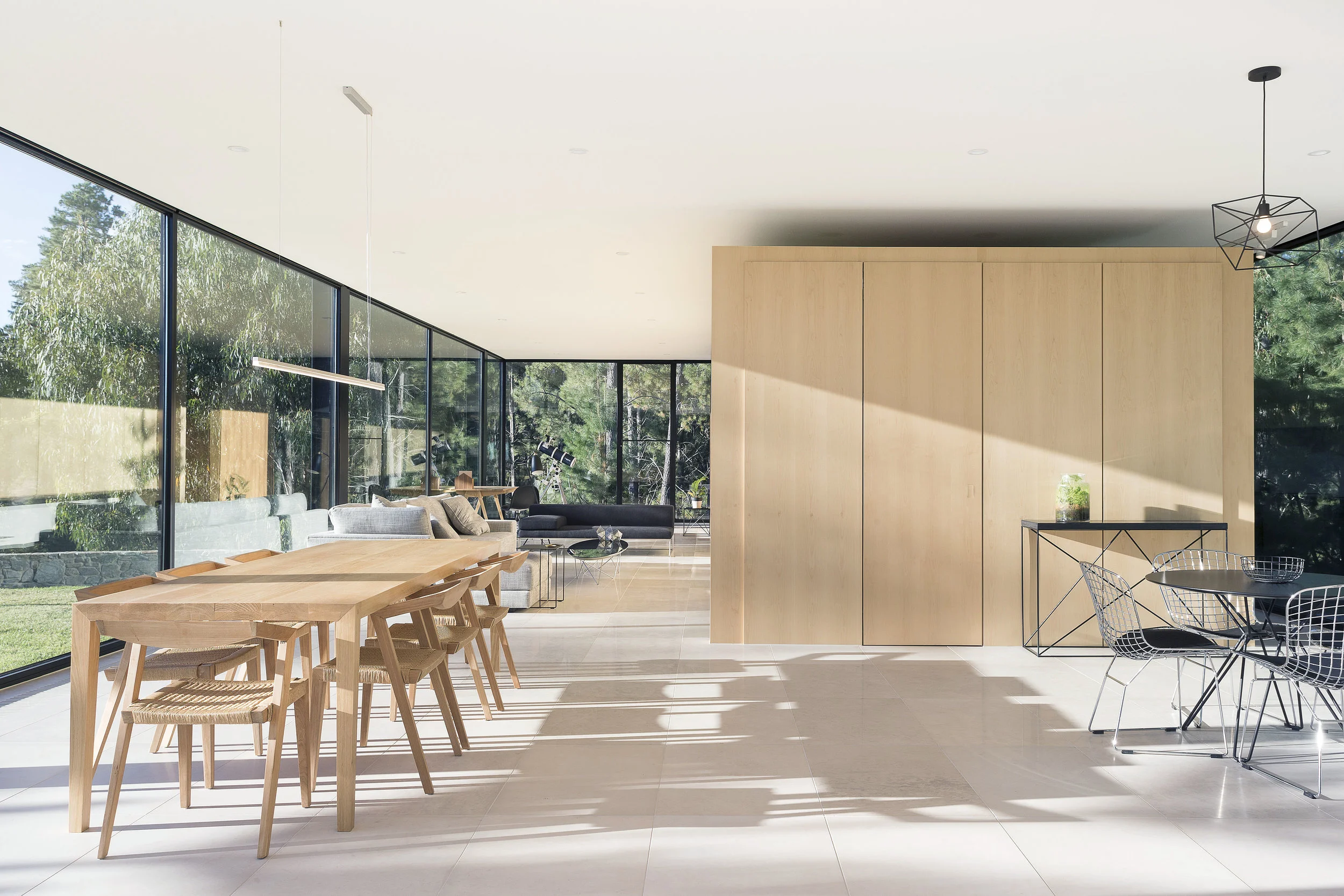 Beautiful Japanese birch, carefully handcrafted and sourced from sustainable forests, wraps around the kitchen area, exuding a sense of serenity and balance. It complements the natural stone elements while bringing a sense of lightness and simplicity to the space.
